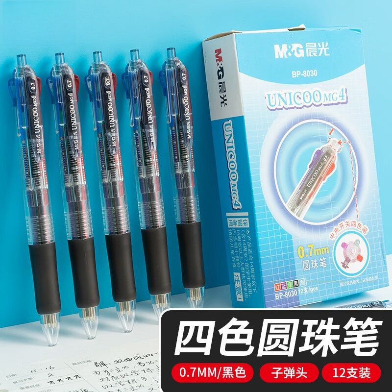 晨光 0.7mm四色圆珠笔中央开关 12支/盒-BP8030