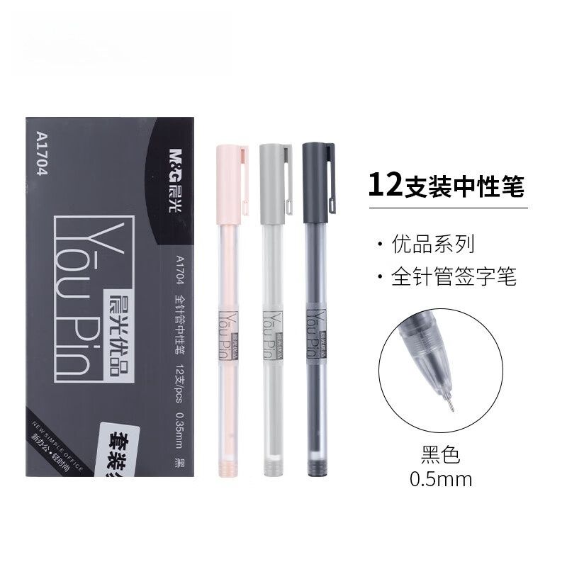 晨光 0.35mm黑色优品拔盖中性笔 12支/盒*2盒-AGPA1704A 笔杆颜色随机发货