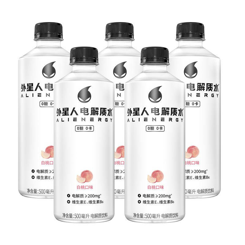外星人电解质水0糖0卡补水饮料白桃味500ml*5瓶