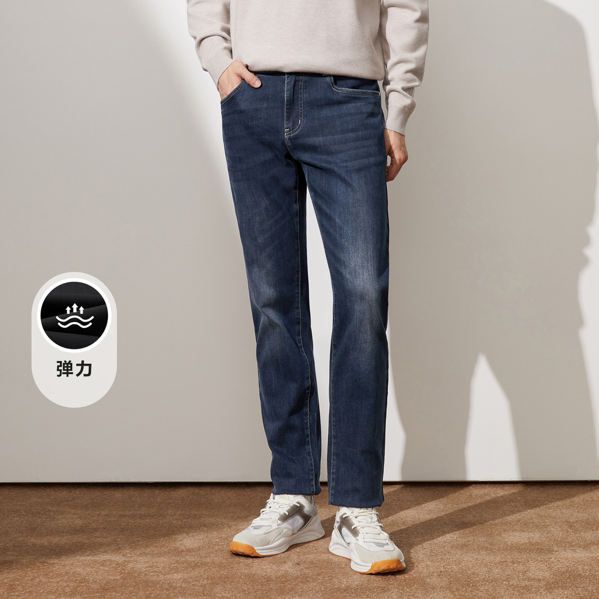 曼西尔奴男士弹力直筒百搭加绒保暖牛仔裤23253642TM