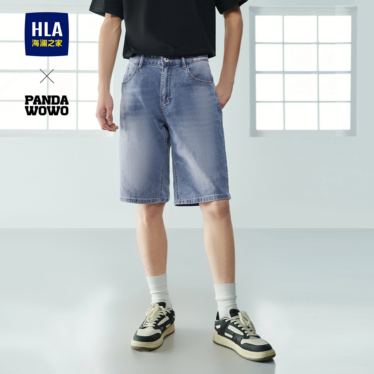 【新国潮熊猫】夏季热销轻薄直筒五分男士牛仔中裤短裤 118536