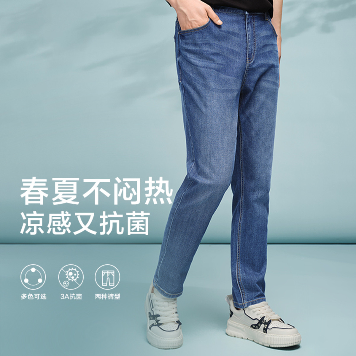 【3A抗菌凉感裤】春夏微弹中腰冰氧吧透气男士牛仔裤 285704