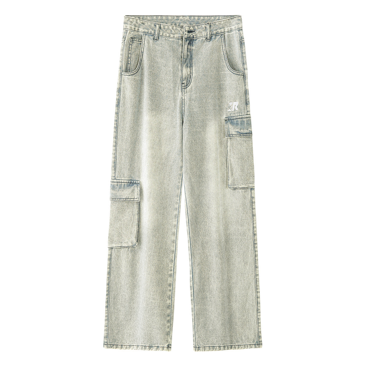 大口袋工装牛仔裤春秋直筒宽松阔腿长裤复古休闲裤男女同款 705943