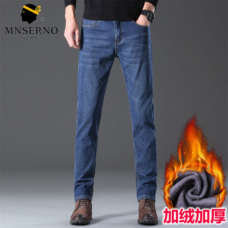 曼西尔奴男士潮流冬季加绒加厚商务休闲百搭保暖直筒牛仔裤125347TM