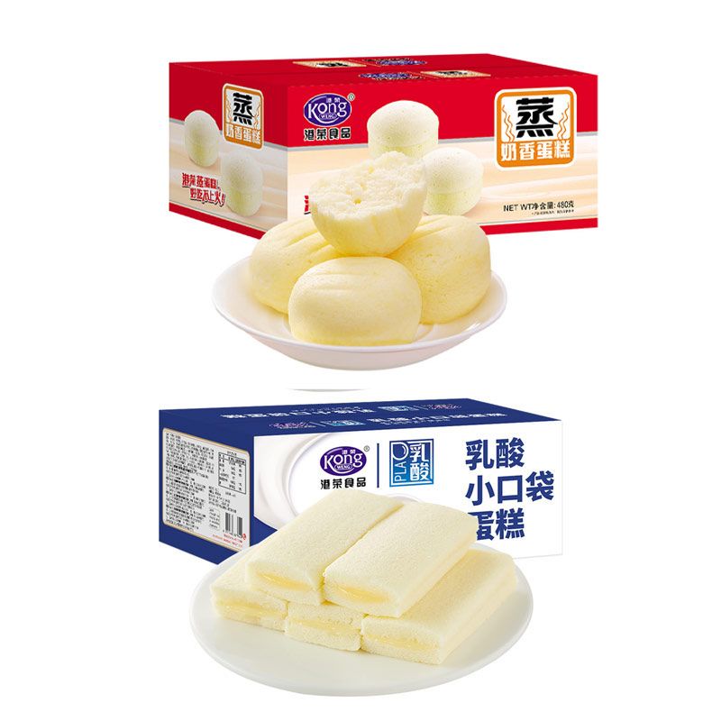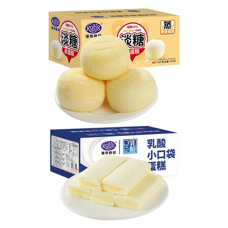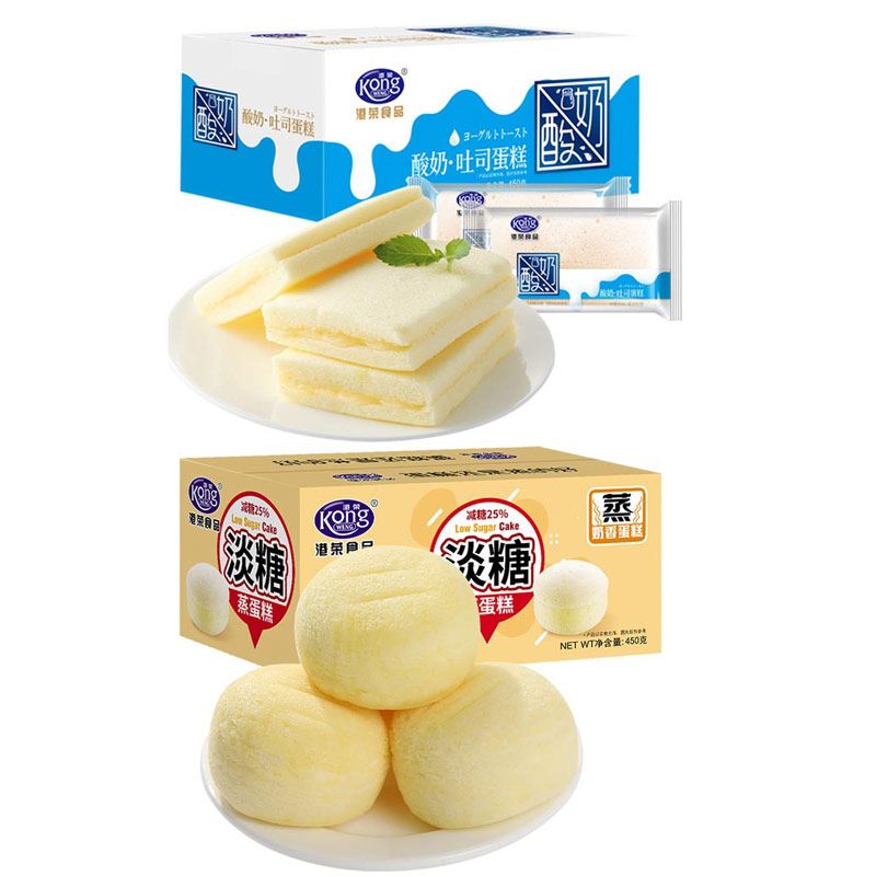 港荣蒸蛋糕 原味酸奶吐司450g整箱+淡糖蒸蛋糕450g整箱