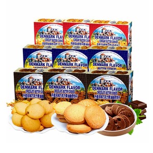 ZEK丹麦黄油曲奇饼干原味葡萄干味巧克力味混合装90g*9盒
