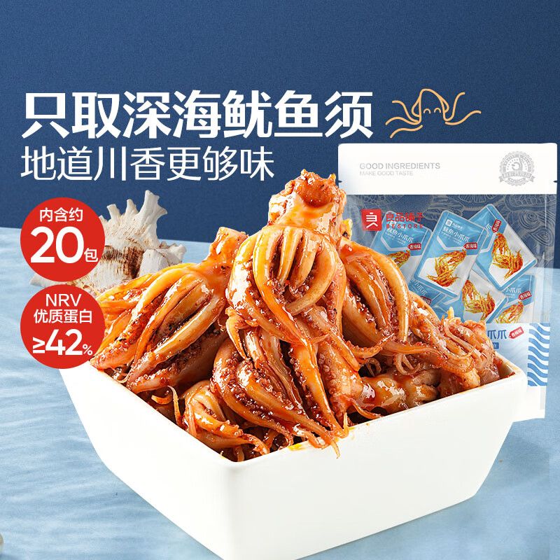 良品铺子鱿鱼小爪爪麻辣味即食海味海鲜熟食鱿鱼仔鱿鱼丝小吃休闲零食200g*3袋