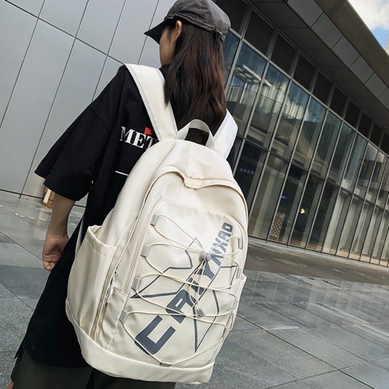 彤彤兔 大容量书包女港风大学生字母百搭双肩包韩版简约情侣休闲旅行背包