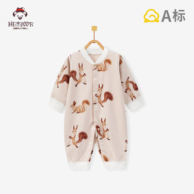 班杰威尔 婴儿纯棉无骨宝宝哈衣 90cm 四季松鼠茶