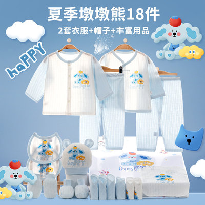 班杰威尔 新生儿礼盒婴儿衣服套装 66cm 夏季墩墩熊蓝A