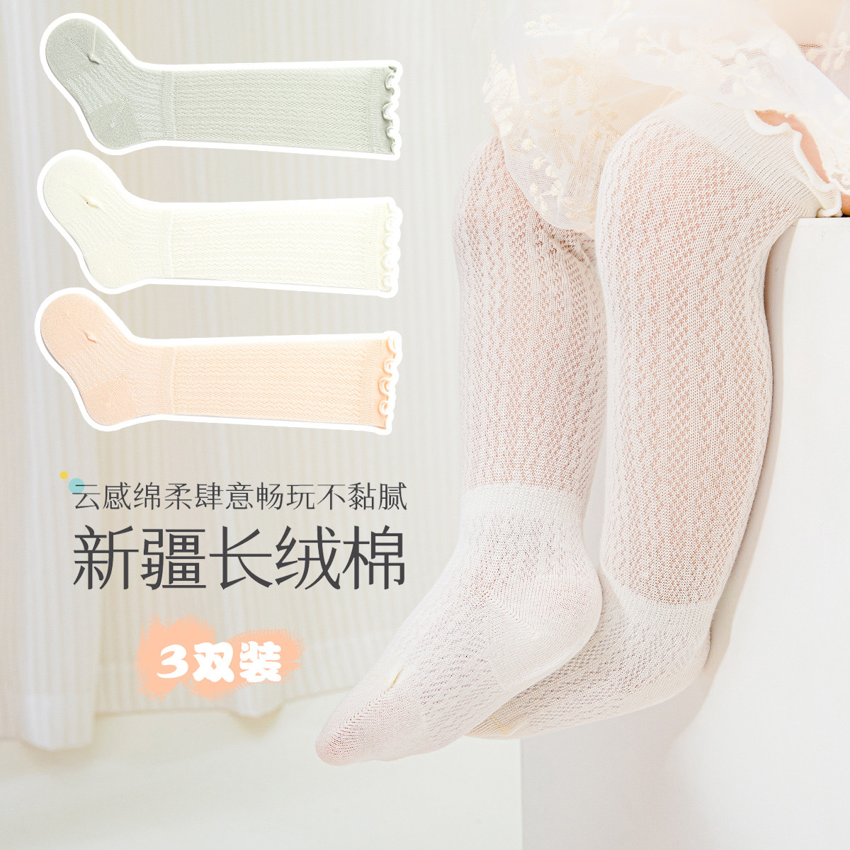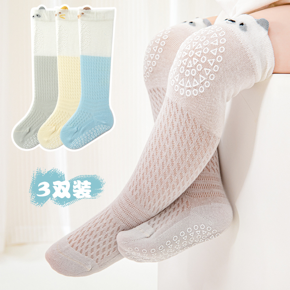【3双装】婴儿袜子四季宝宝亲肤长筒袜过膝护腿舒适高筒袜子 571599
