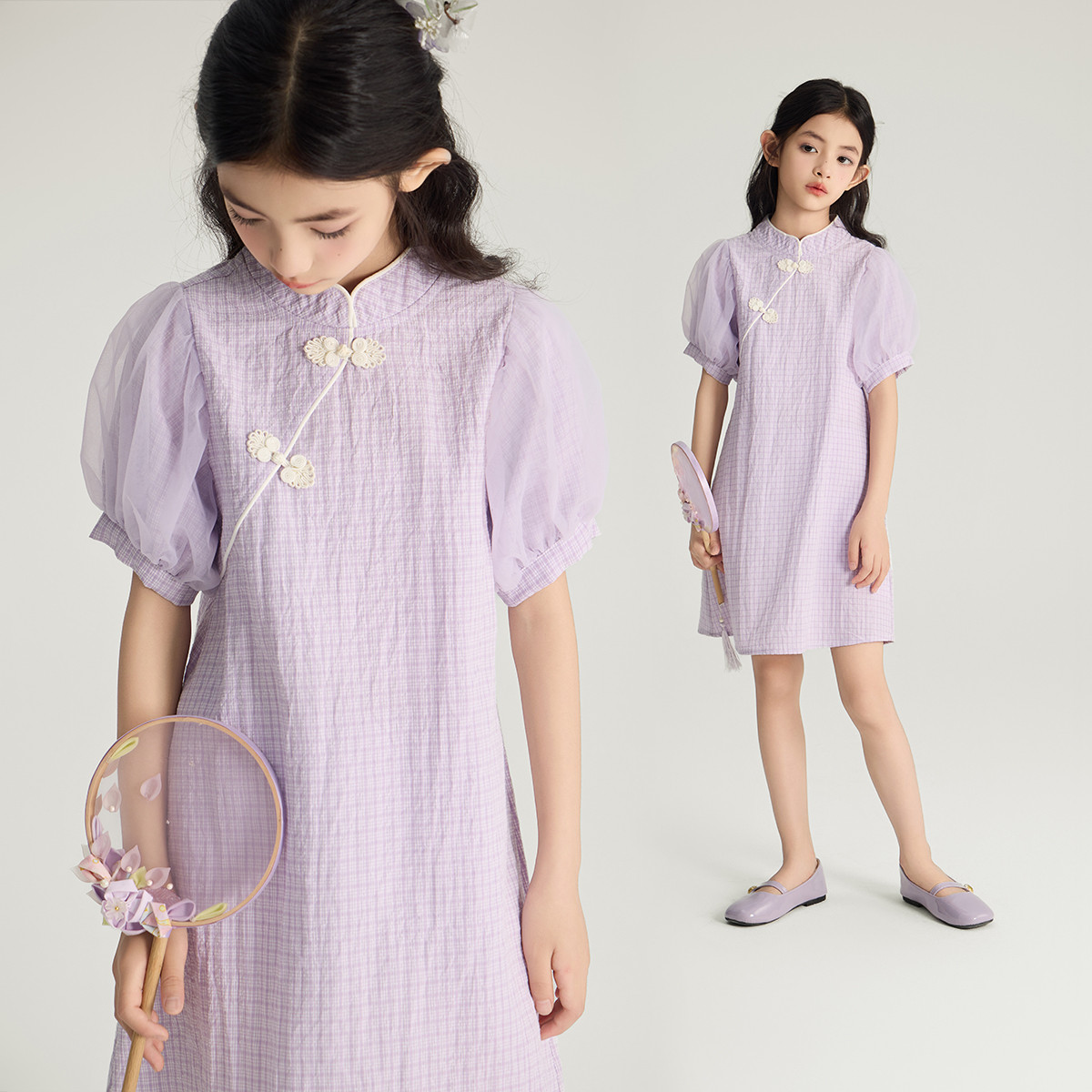 女童裙子夏季2024中国风盘扣新中式国风舒适女童百搭连衣裙 443983