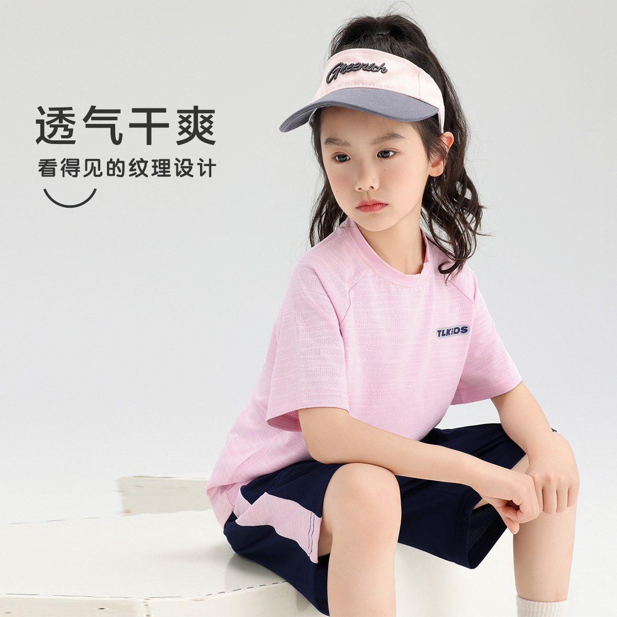 女童学院风套装25年夏季儿童夏款纯棉透气短袖中大童运动两件套 908371