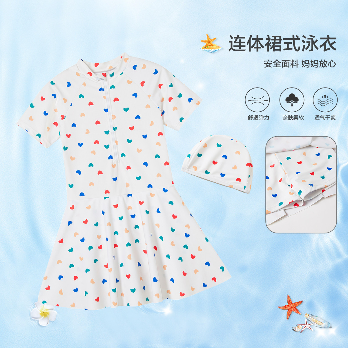【含泳帽】泳衣女童连体式儿童游泳衣中大童泳装四季穿 880207