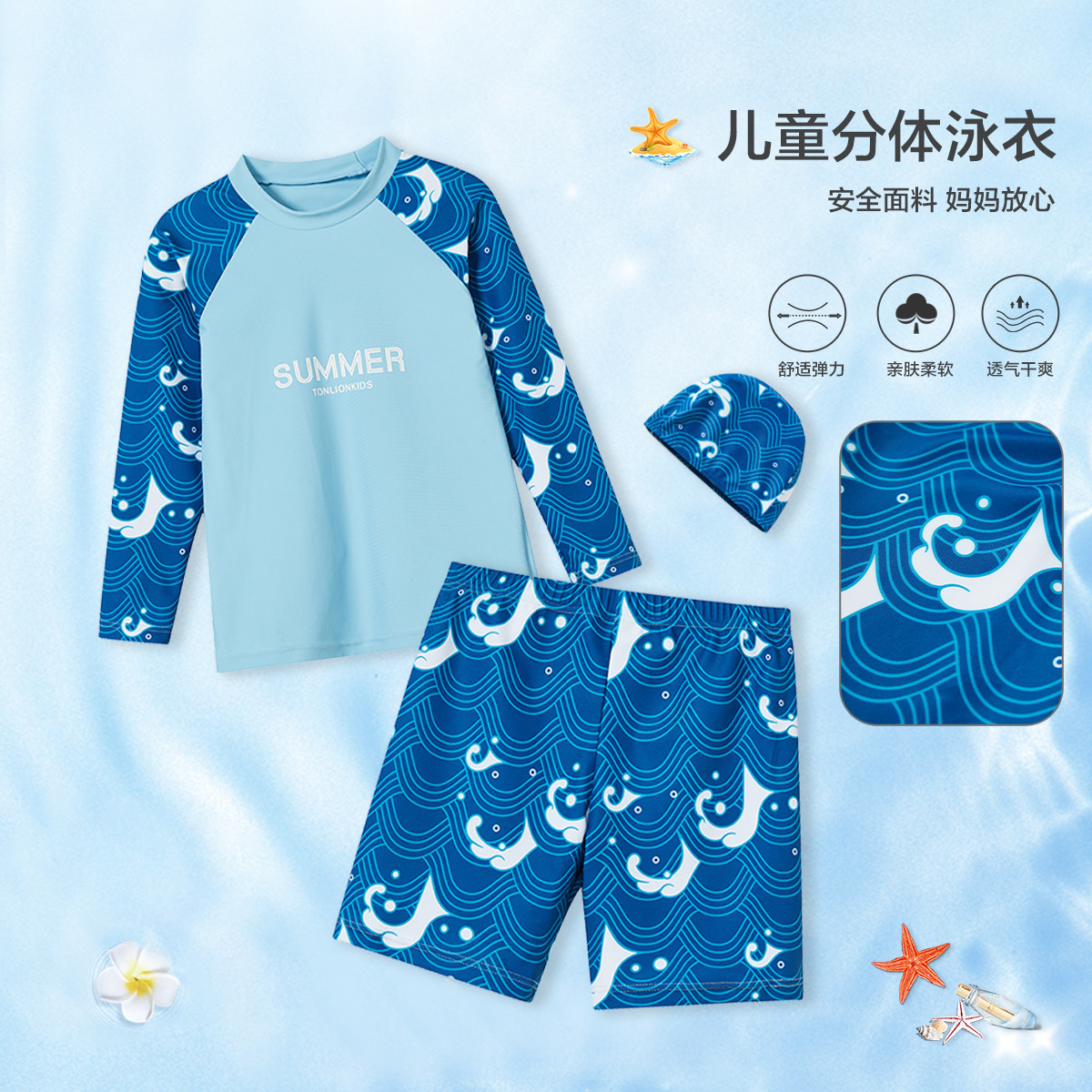 【含泳帽】泳衣男童2024分体式儿童游泳衣中大童泳装四季穿 240143