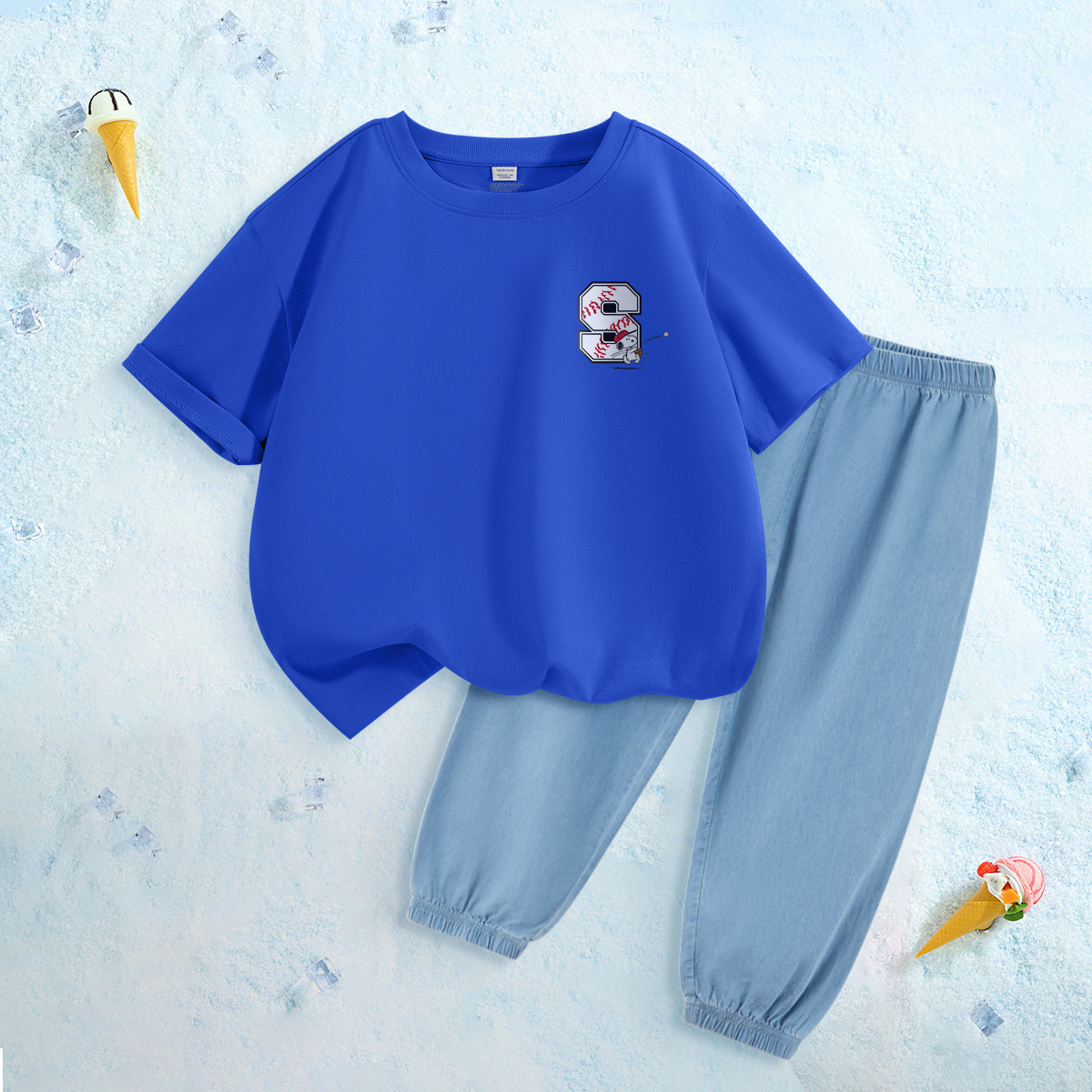男童运动套装中大童夏季新款短袖t恤青少年薄款仿牛仔裤子儿童装 262623