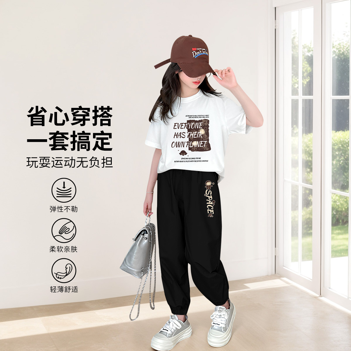 女童套装2024夏季中大童儿童薄款透气短袖T恤宽松长裤两件套 513103