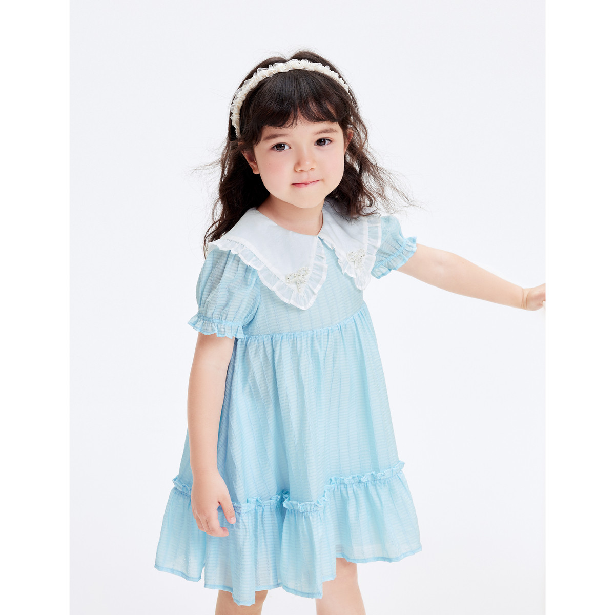巴拉巴拉女童连衣裙夏儿童裙子小童可爱泡泡袖洋气甜美公主裙时尚 609093