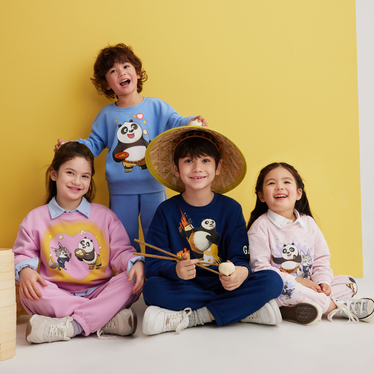 【功夫熊猫联名】Gap男女童春秋2024洋气针织圆领卫衣890571 858266