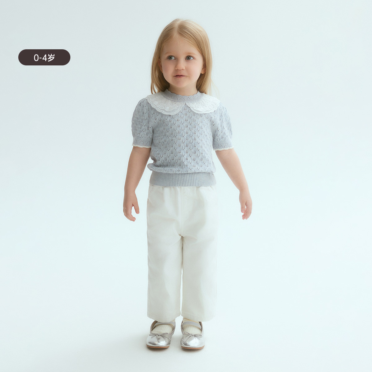 小熊童装夏季女宝宝全棉镂空蕾丝领毛衣 763009