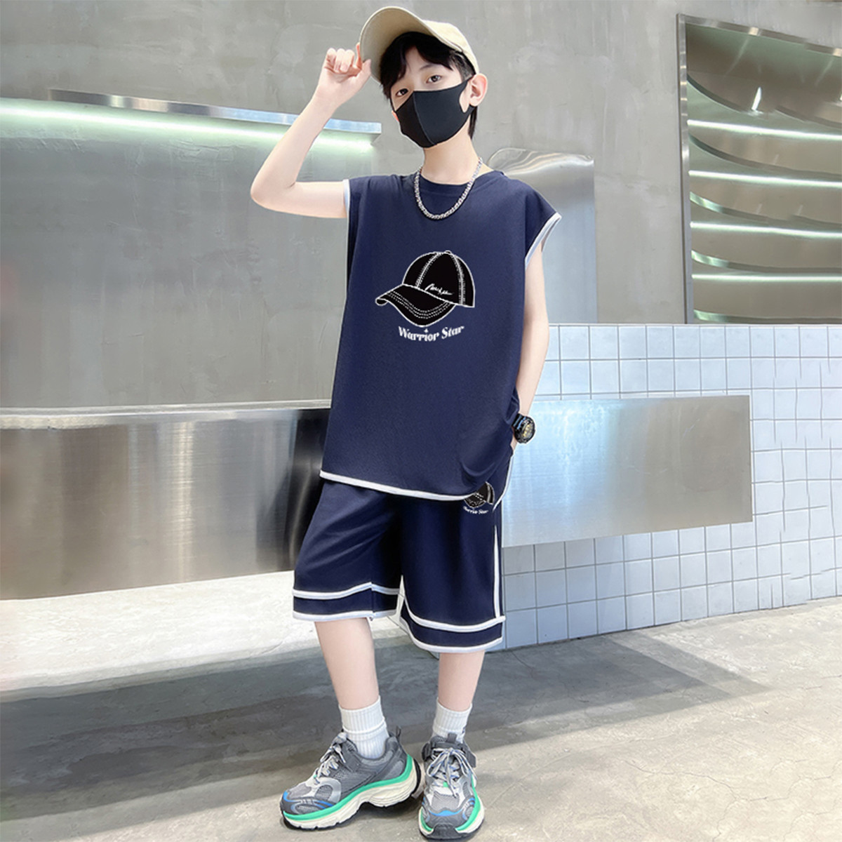 童装24年夏季男童背心套装休闲撞色潮流两件套儿童洋气百搭 434259