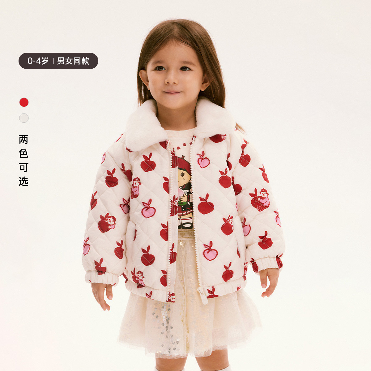 小熊童装春季男女宝宝毛领拉链印花棉服 822977