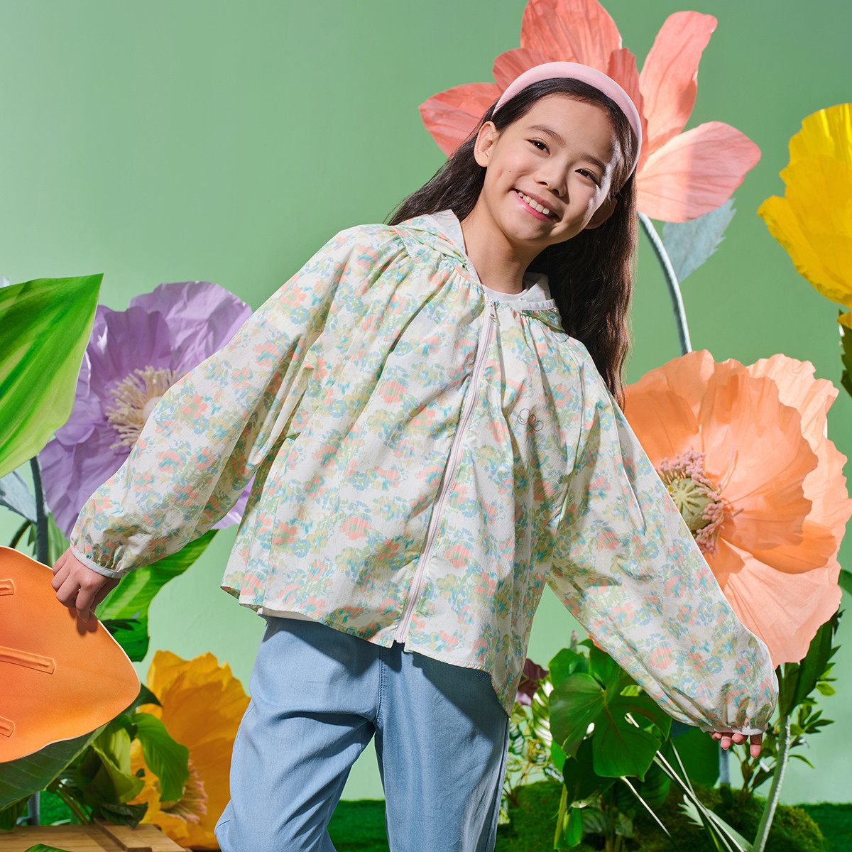 Gap女童2024夏季伞形衣儿童装连帽轻薄外套890475 602330