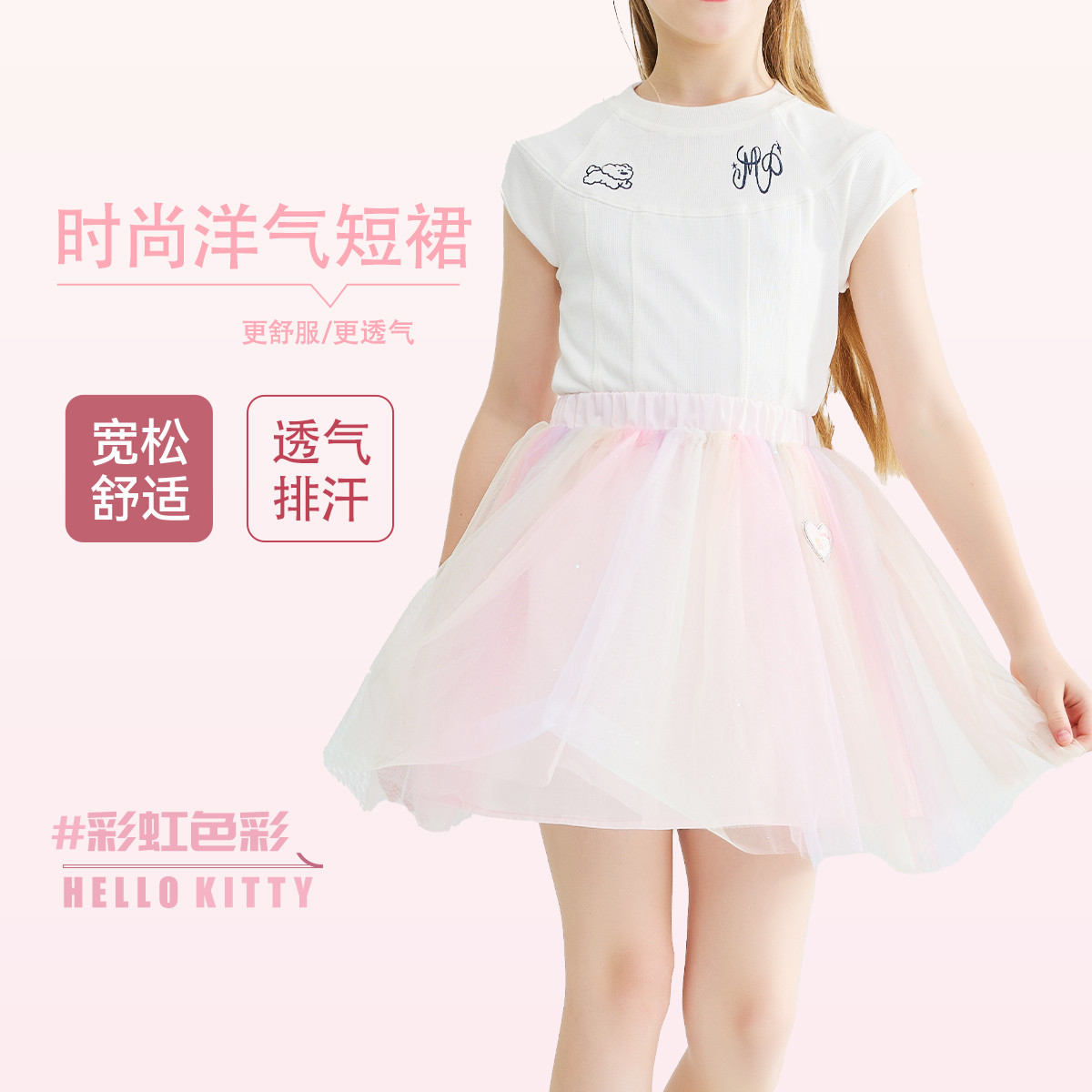 夏季女童百褶裙渐变儿童夏季裙子公主裙网纱清凉短裙蓬蓬裙甜美 358849