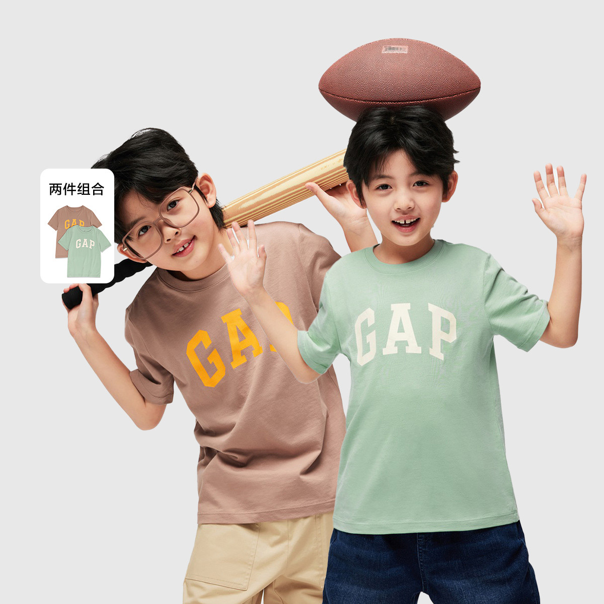 Gap男女童春秋季2024LOGO纯棉短袖T恤套装儿童装404362两件装 055386