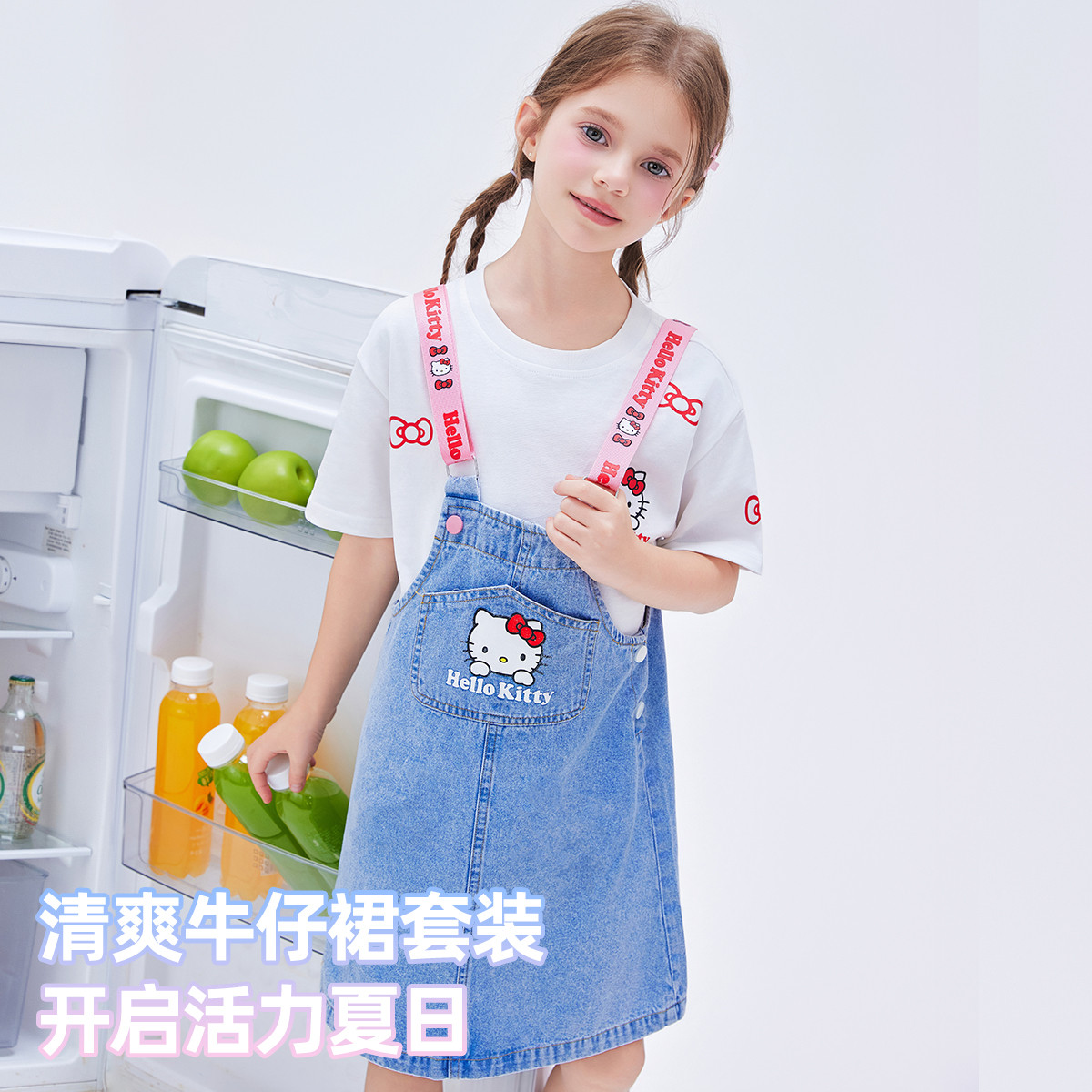 【吊带牛仔裙套装】2025款女童夏季牛仔短裙T恤中大童两件套 094878