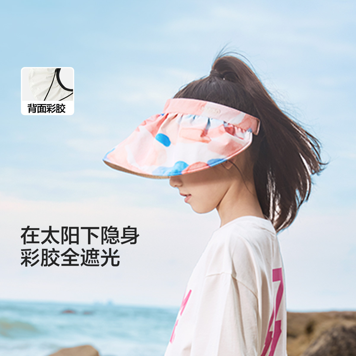 UPF80+儿童防晒帽夏季透气遮阳帽女童防紫外线宽帽檐空顶帽 693765