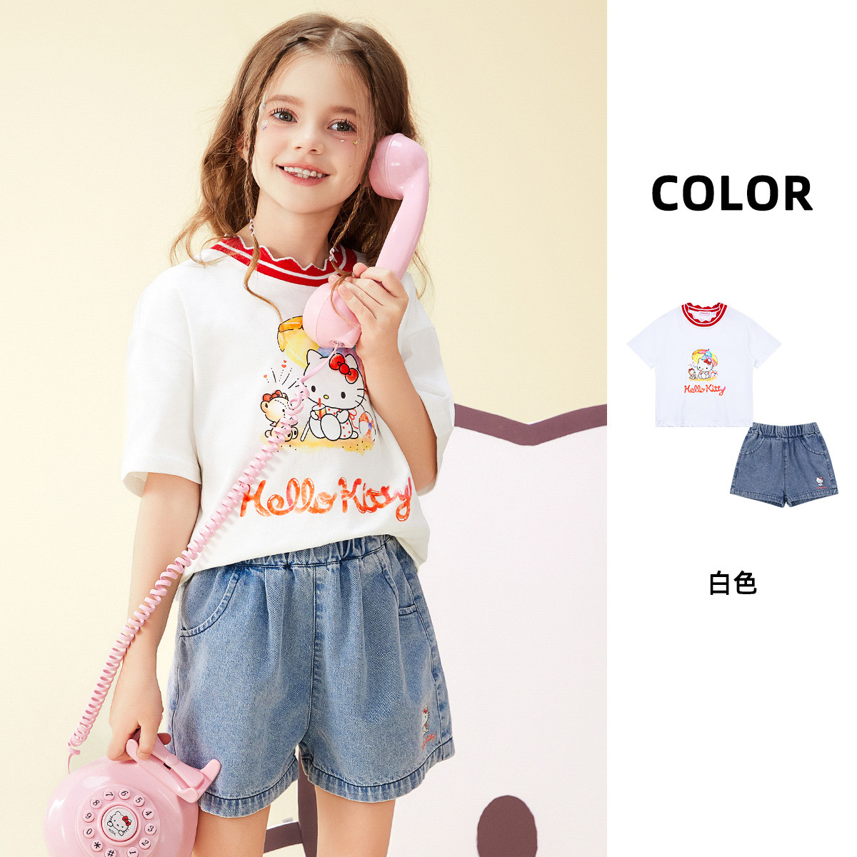 女童夏季中大童套装2025款【撞色波浪纹领子上衣+牛仔短裤】 903966
