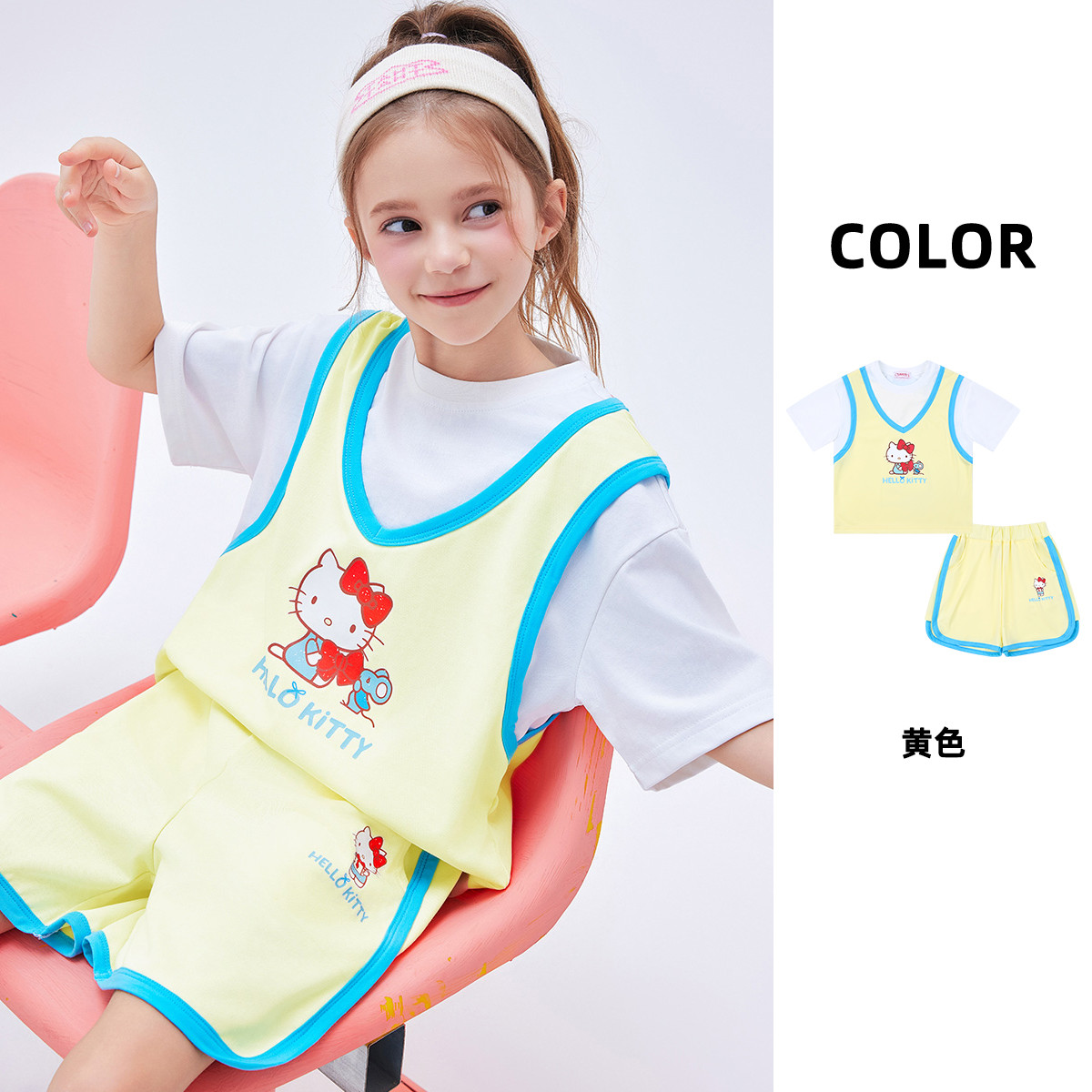 【运动风套装】2025款女童夏季跑步透气女宝凯蒂猫两件套 607326