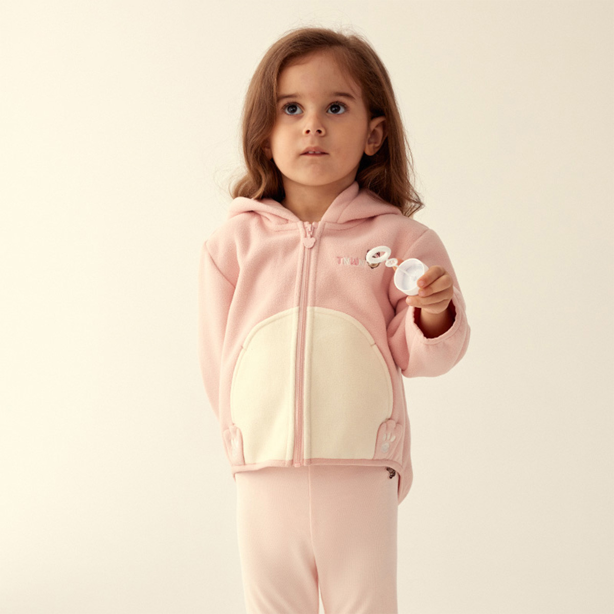 小熊童装春款女宝宝保暖连帽拉链款棉服 151809