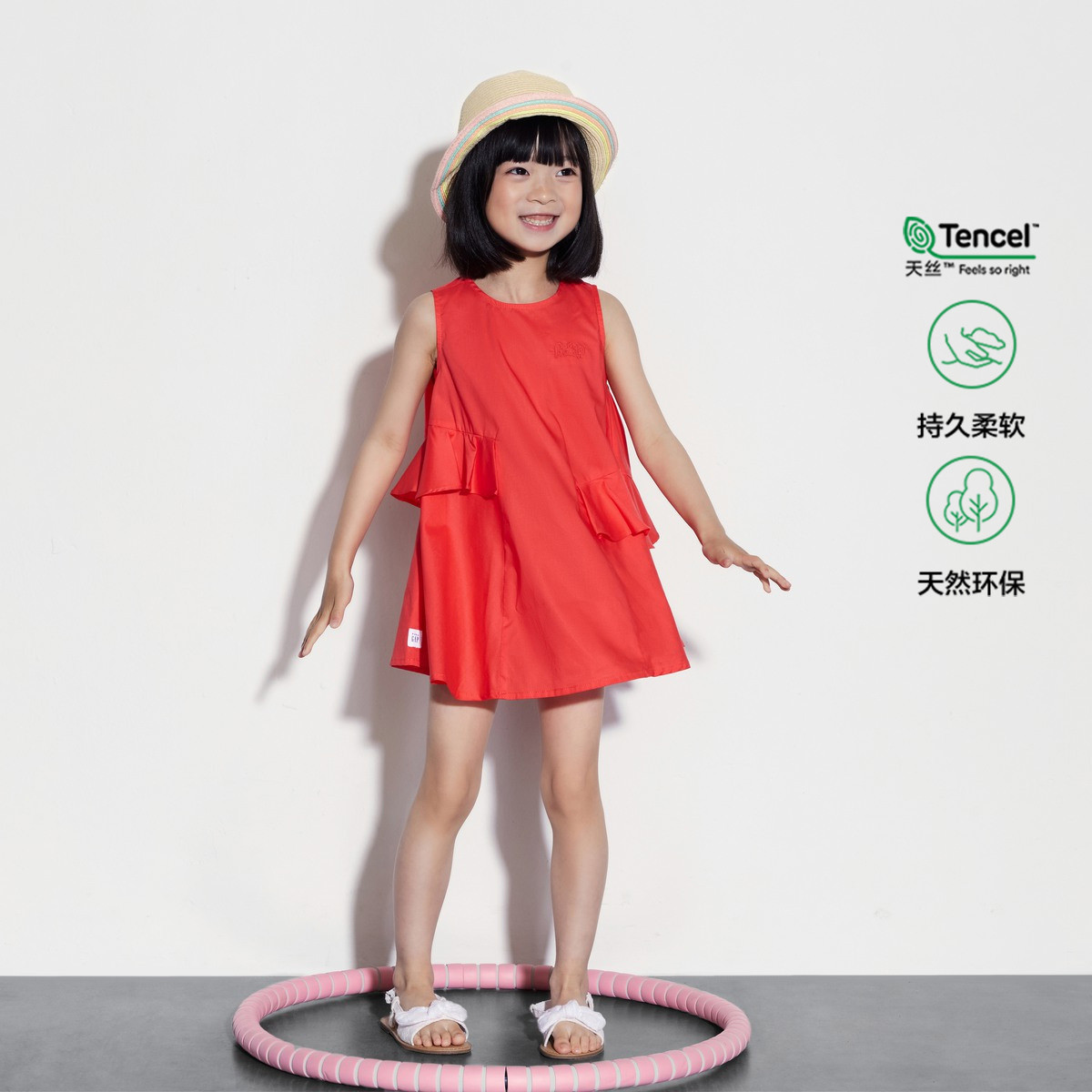 Gap女幼童2024春秋季天丝花边无袖连衣裙儿童装可爱洋装466730 912986