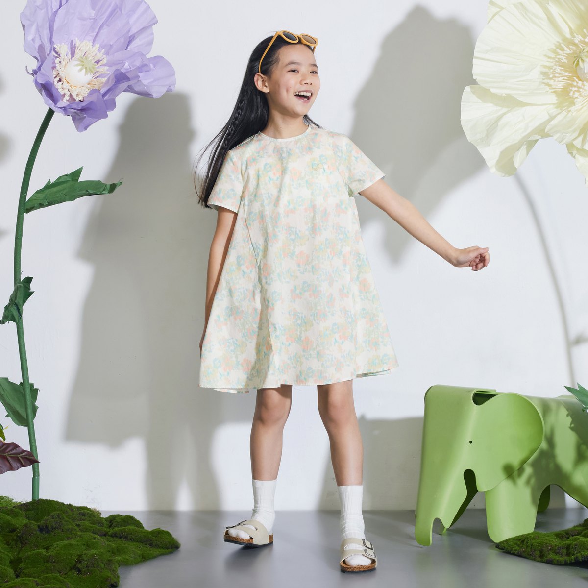 Gap女童2024春秋季纯棉花卉满印短袖连衣裙儿童装洋装890493 528922