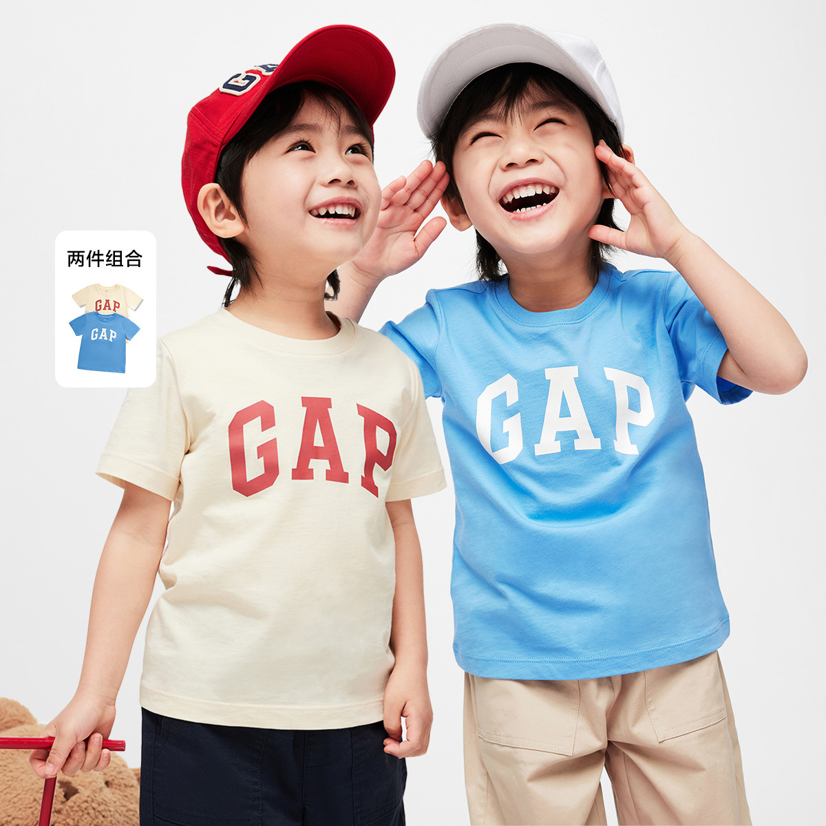 Gap男女幼童2024春秋季款纯棉字母logo短袖T恤儿童装404338 387162