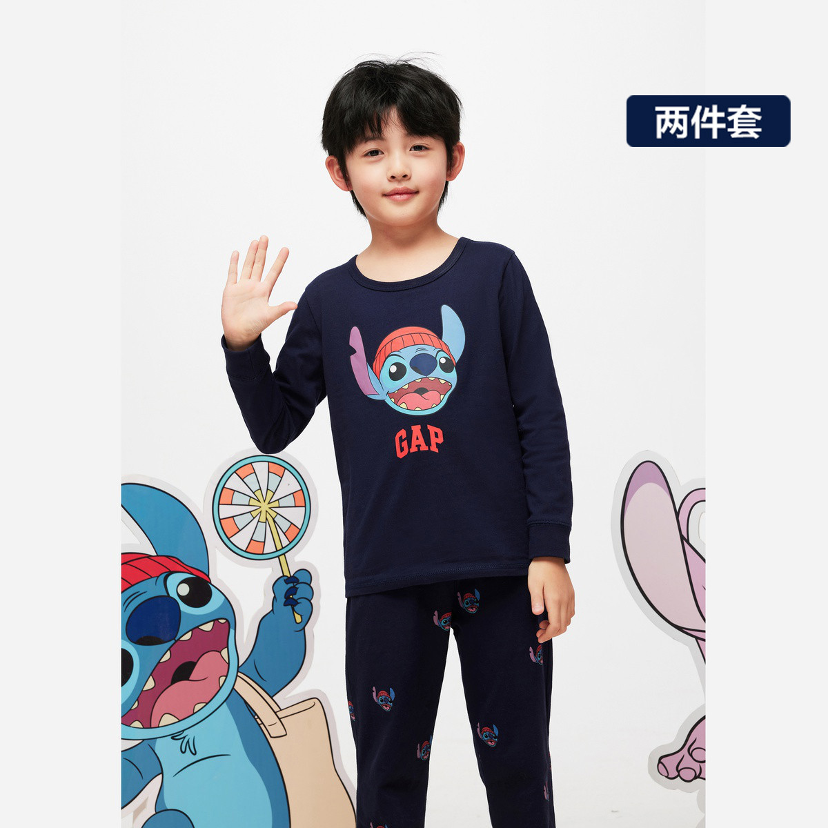 【史迪奇联名】Gap男童2024秋冬季睡衣睡裤居家两件套857722 863450