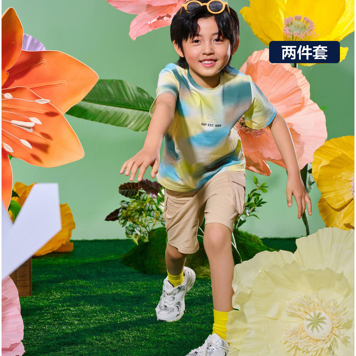 Gap男童2024春秋季纯棉扎染小熊logo短袖T恤短裤运动套装890523 303642