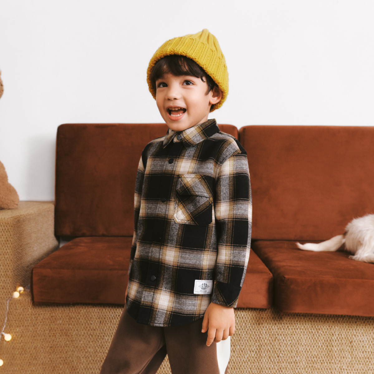 Gap男幼春秋加绒保暖格纹翻领衬衫儿童装洋气休闲上衣837036 597530