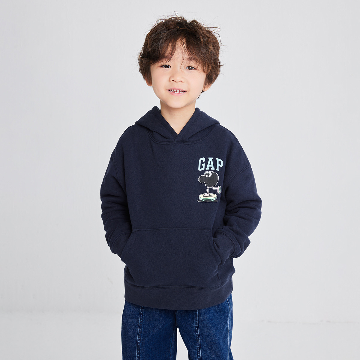 【GAP x JEREMY VILLE联名】男女童抓绒运动卫衣洋气连帽衫847290 758810