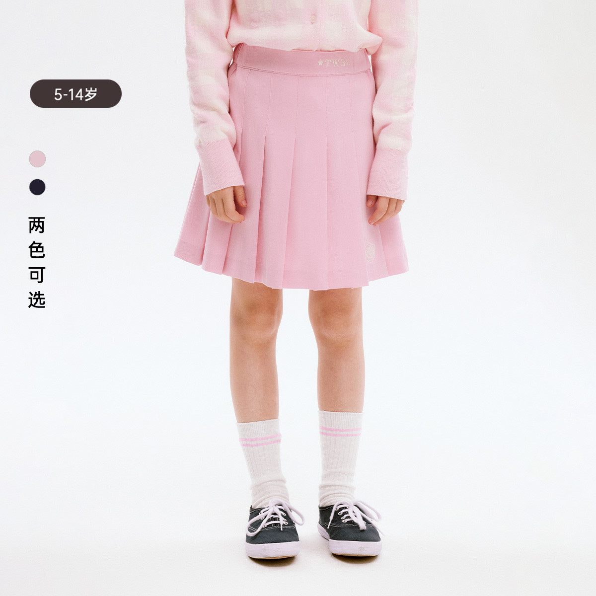 小熊童装春季女童纯色百褶半身裙 182593