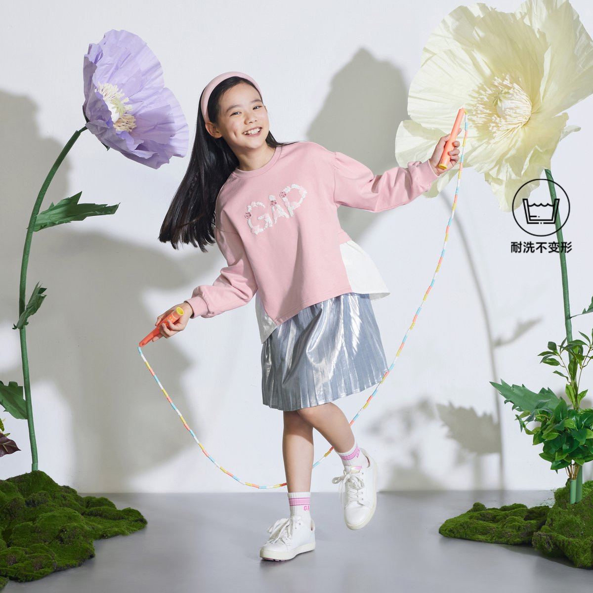 Gap女童2024春秋柔软高弹logo拼接下摆卫衣儿童装上衣890218 807514