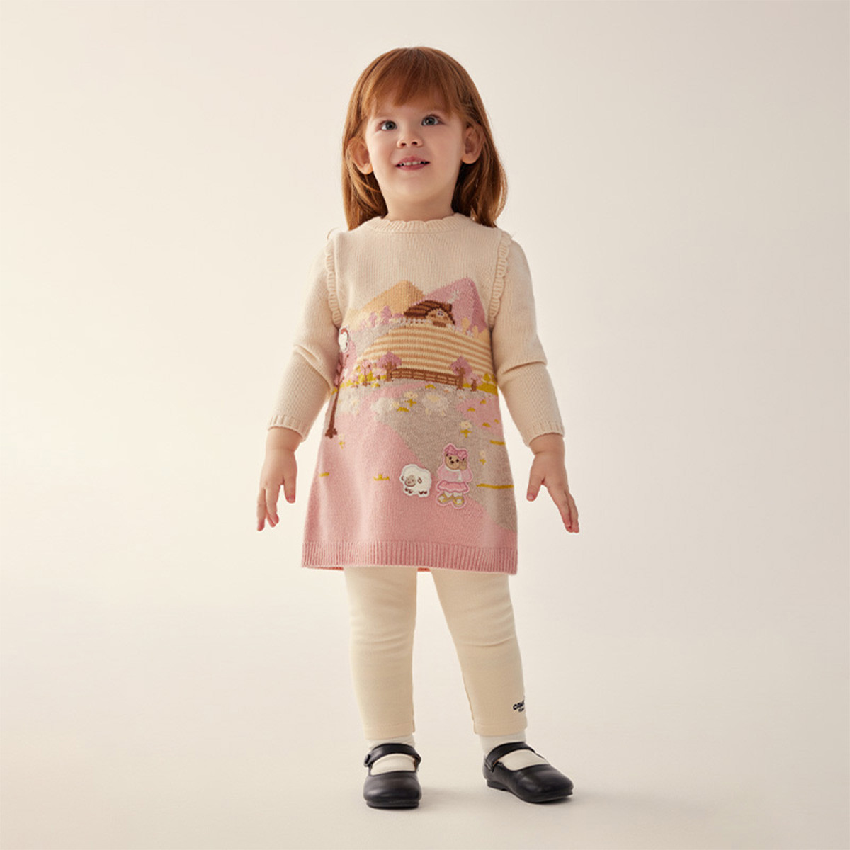 小熊童装春季女宝宝长袖提花针织连衣裙 629889