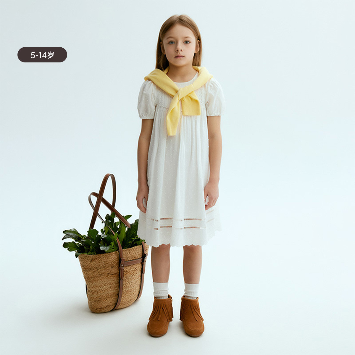 小熊童装夏季女童全棉法式泡泡袖连衣裙 584705