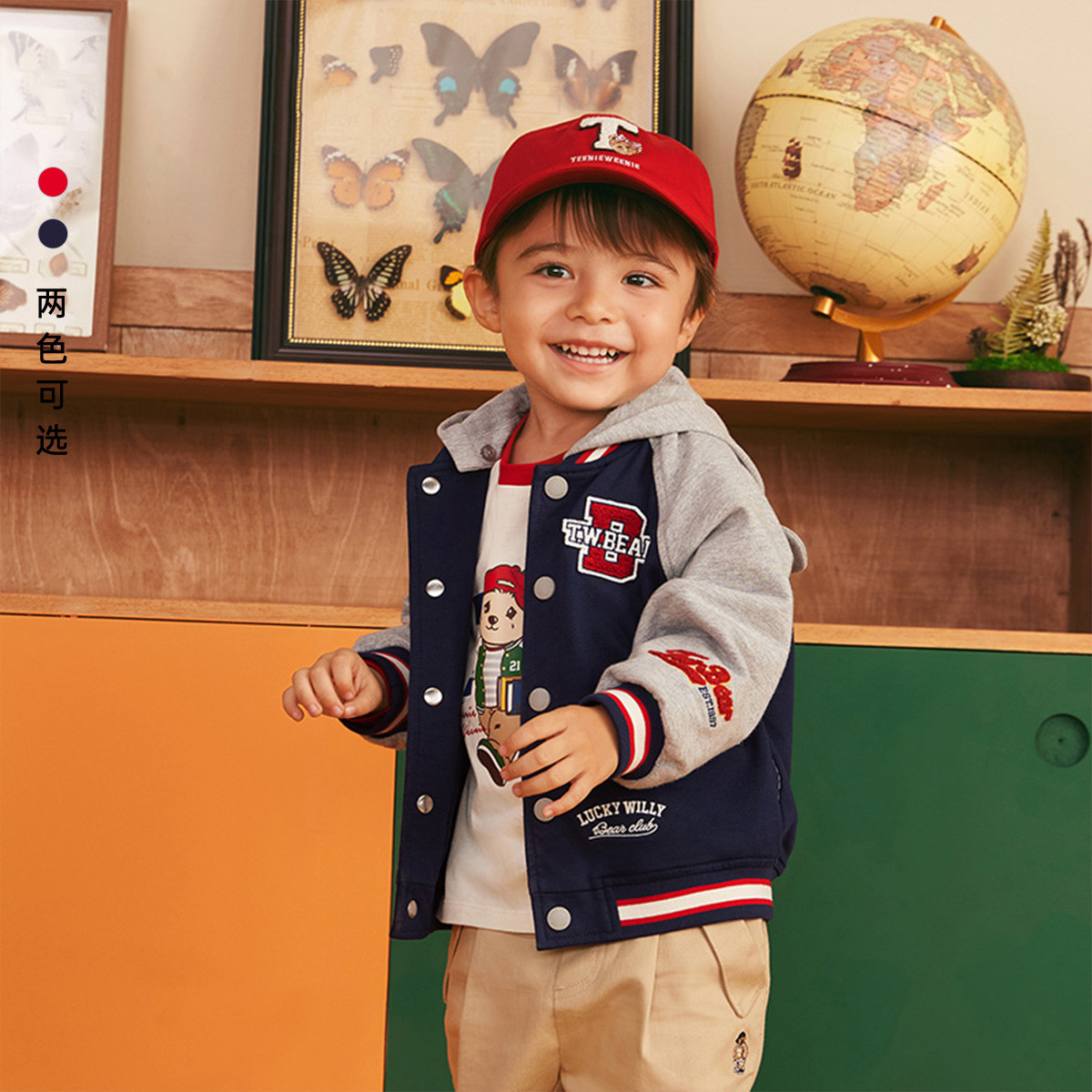 小熊童装男宝宝秋季运动熊耳连帽棒球服 843777