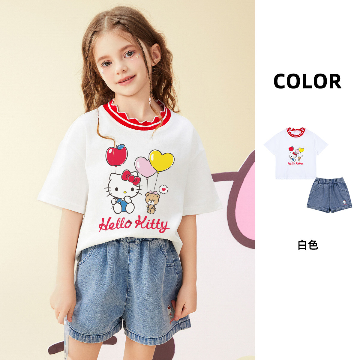 【百搭短t+花边短裤】2025年夏女童T恤裤子两件套女童套装 433240