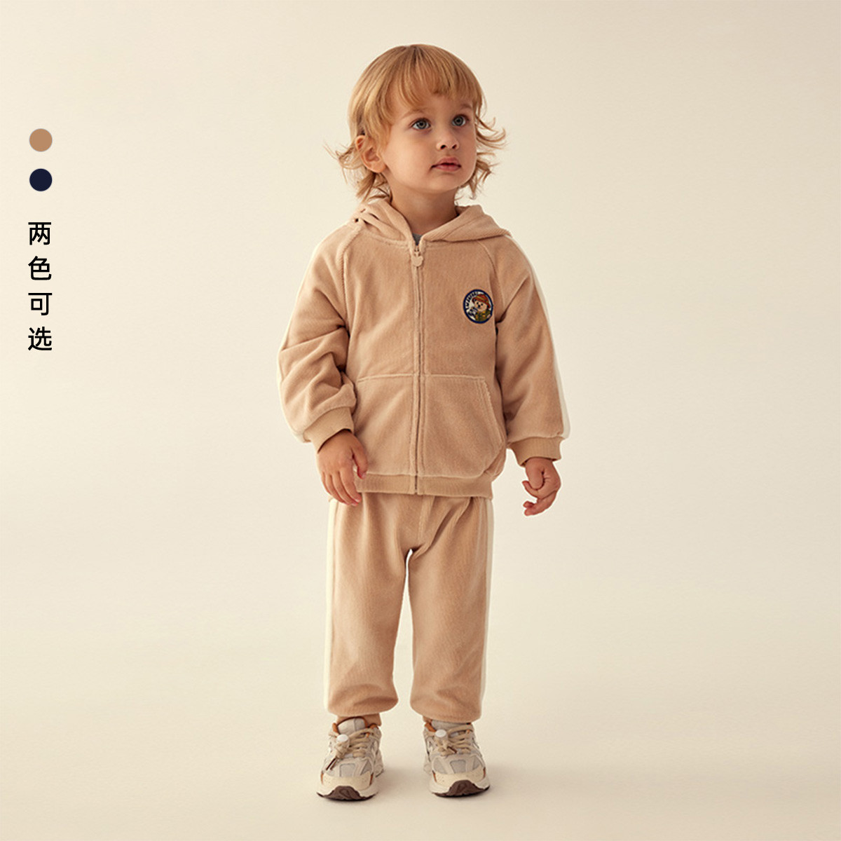 小熊童装春季男宝宝连帽拉链上下套装 376769