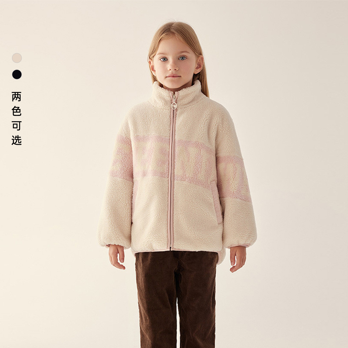 小熊童装春季款男女童撞色拉链仿羊羔绒外套 397249