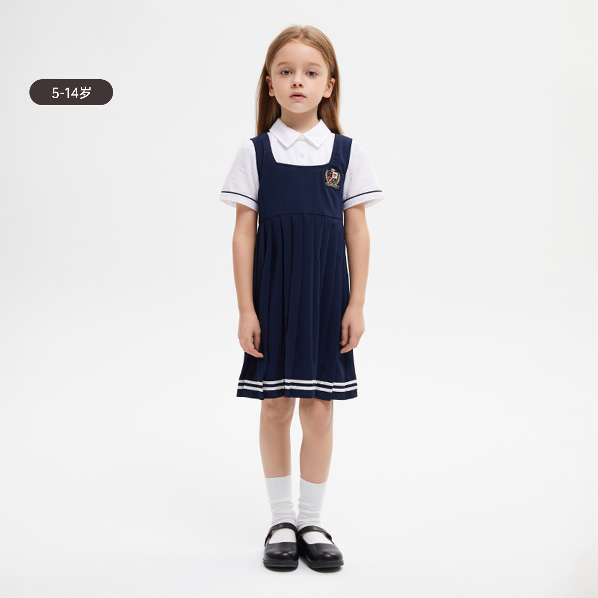 小熊童装女童夏季款学院风百褶裙制服裙 963073